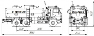 Автоцистерна оборудована ящиком ЗИП, пеналами для укладки напорно-всасывающих рукавов, лестницей с поручнем, рабочей площадкой в зоне горловины и противопожарным инвентарем.
